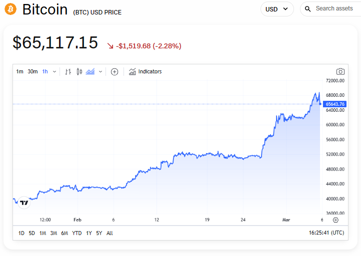 - Bitcoin posted a sharp pullback after surging above $69,000 to hit a new all-time high.