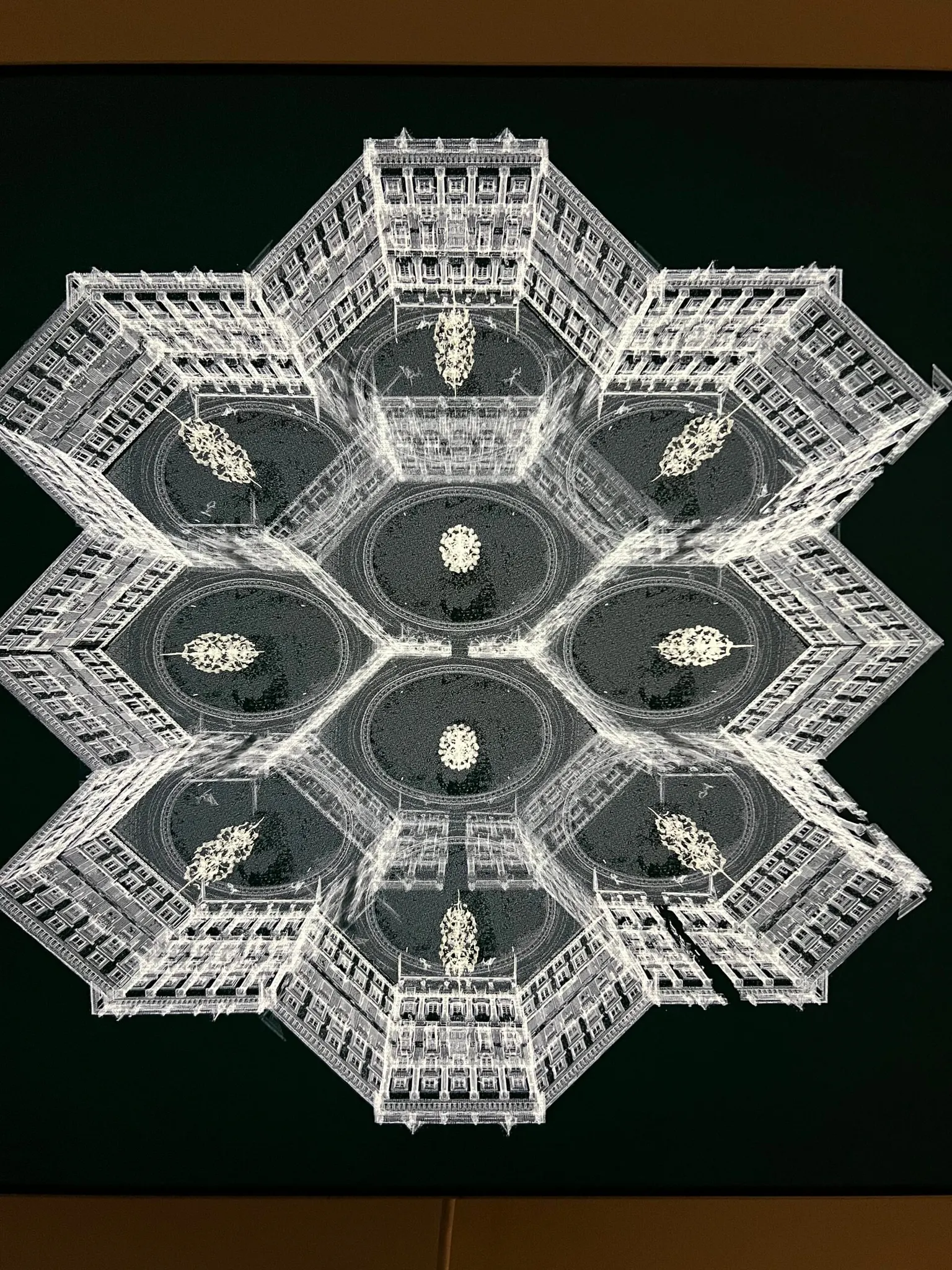 For “Blueprints,” Alice used artificial intelligence and machine learning to create an aesthetic rendering of these ancient plans, echoing the logic of the blockchain and including references to Jorge Luis Borges’ novel “The Library of Babel."
