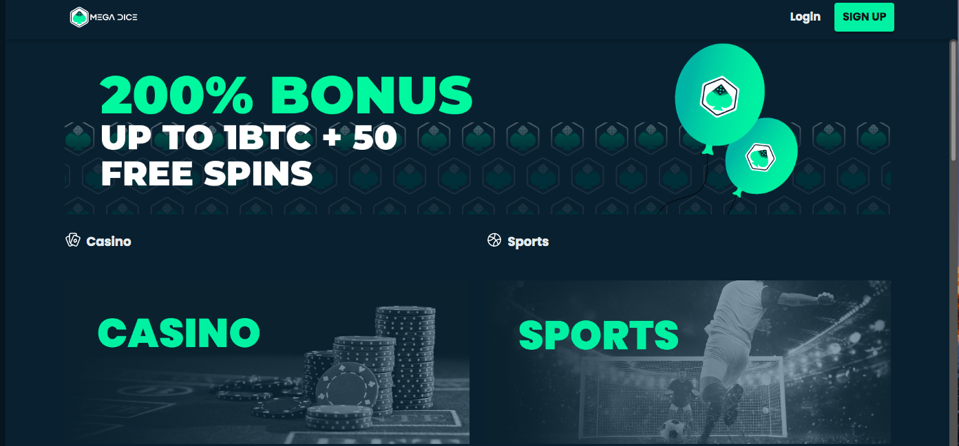 | Mega Dice | 200% matched deposit bonus + 50 free spins | No code required | 6x on 10% |