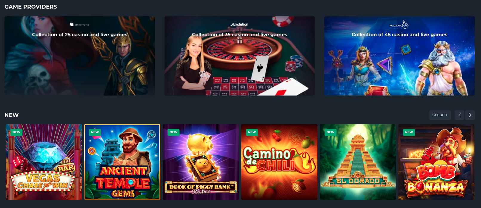 This platform includes a sports betting section with plenty of options. As well as slots, and live casino games. Some of the most popular games as of writing this review include Sweet Bonanza by Pragmatic Play, Piggy Riches Megaway by Red Tiger, and True Grit Redemption by NoLimitCity.