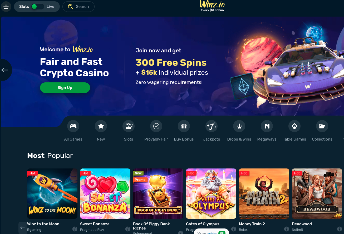 | Winz.io | Up to 300 free spins or 100% match deposit with $500 | SPORTS/SLOTS | N/A |