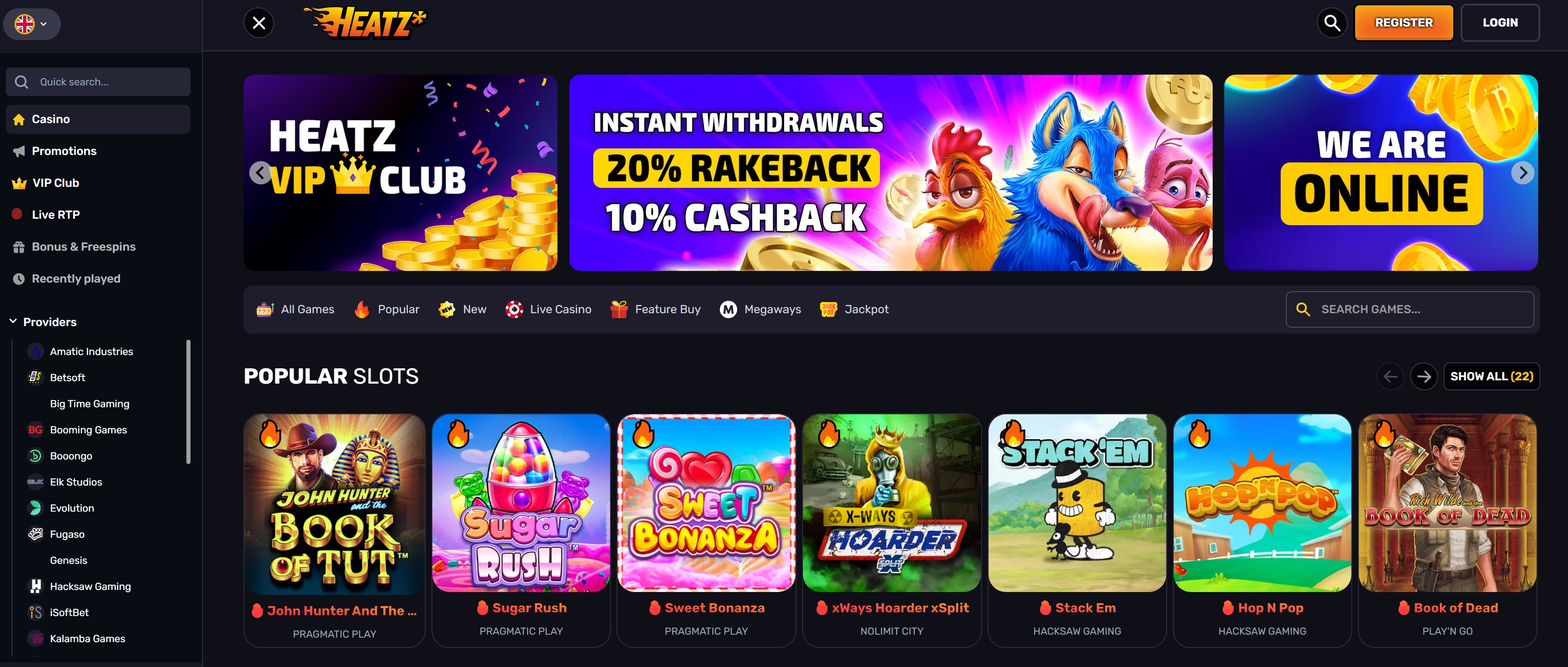 - Heatz - Intuitive Crypto Casino With Well-Picked Games