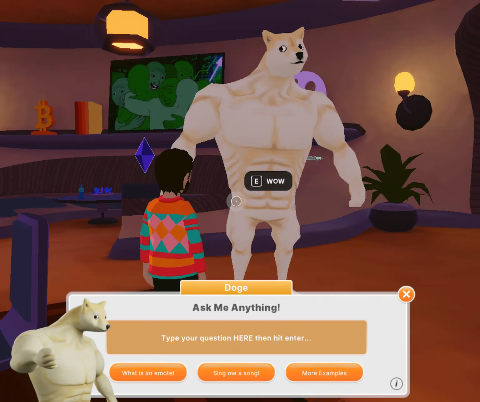 Ethereum-powered metaverse game Decentraland is embracing AI, letting you chat with a brainy 'bot or a buff Doge bodybuilder.