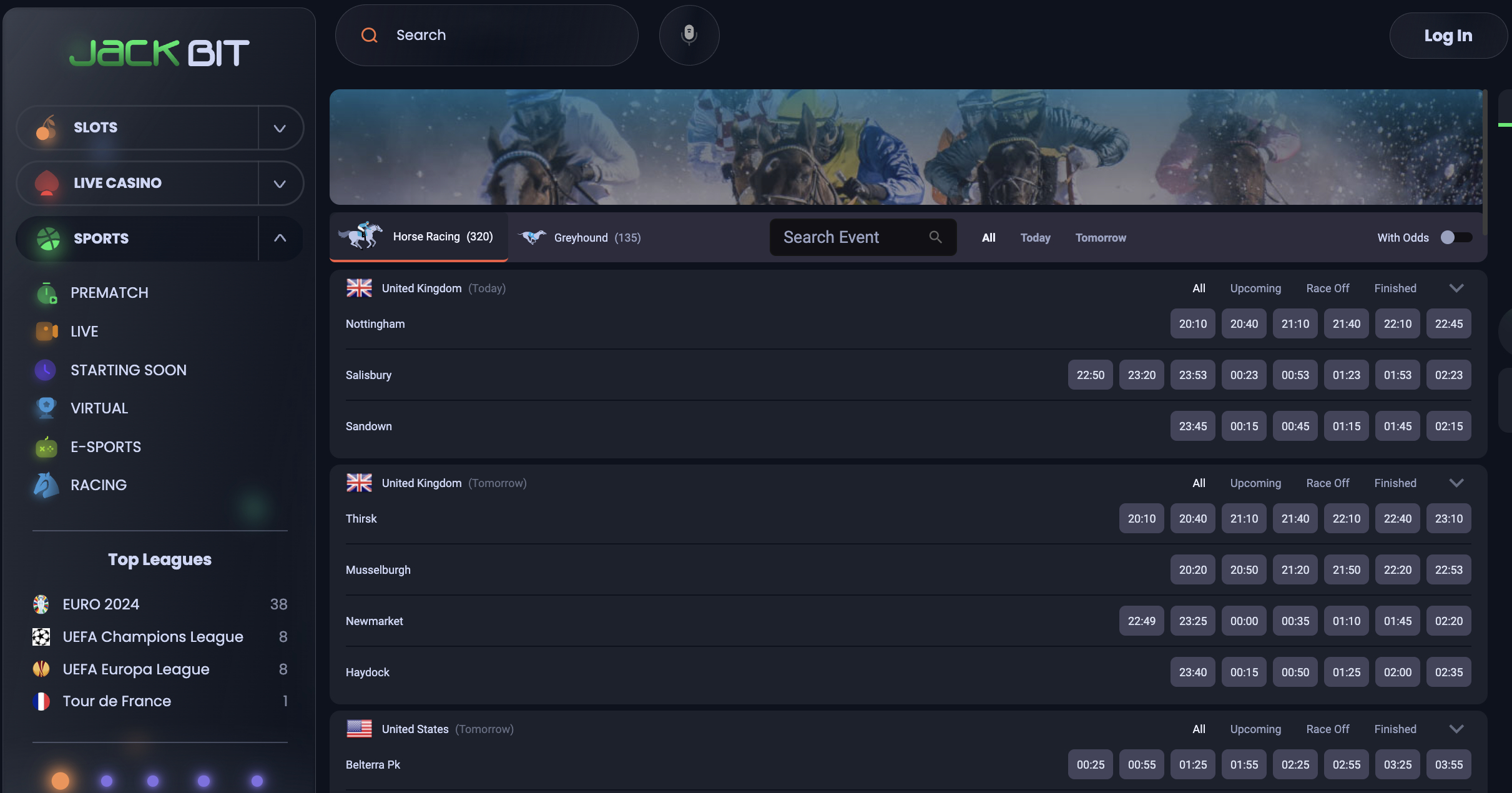 Jackbit is one of the best betting sites without Gamstop for gambling on horse racing. It supports all horse racing meetings in the UK and Ireland. What's more, Jackbit also supports international meetings. This includes races in the US, Australia, Chile, and many other countries. In addition to esports and virtuals, Jackbit also supports traditional sports.