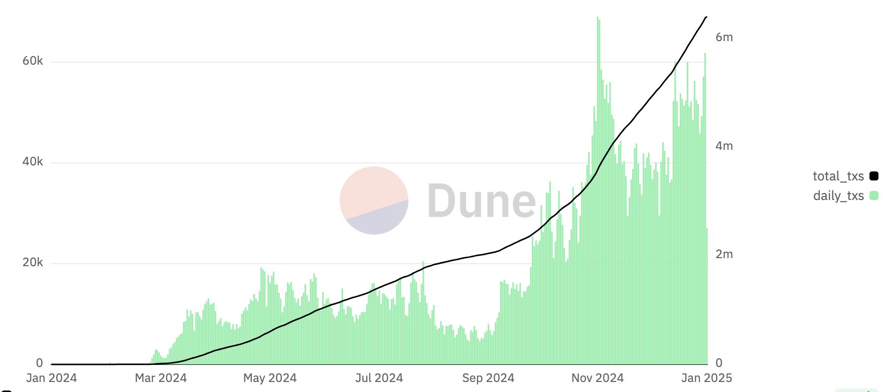 As per the recent data from Dune Analytics, there’s a sharp surge in daily transactions on the Solana blockchain, climbing from 45,881 on January 17 to January 19. The increase comes amid a memecoin frenzy, signaling a broader revival in network activity.