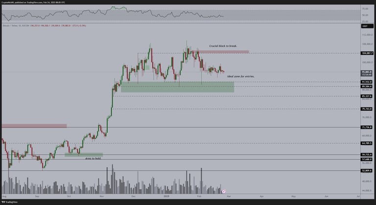 Bitcoin price BTC $95 666 24h volatility: 0.6% Market cap: $1.89 T Vol. 24h: $25.18 B opened the last week of February with a bearish outlook, after gradually losing the bullish momentum in the past four weeks. The flagship coin, with a market cap of about $1.9 trillion and a 24-hour average trading volume of around $23.3 billion, has, however, established a robust support level above $95.5K in the past three weeks.