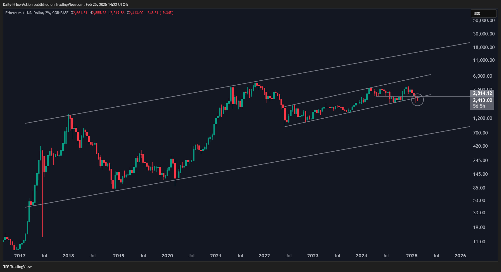 has been under severe selling pressure currently trading just above the crucial support level of $2,400. In the absence of any major catalyst, crypto market analyst Justin Bennet expects ETH to crash all the way to $1,000 levels.