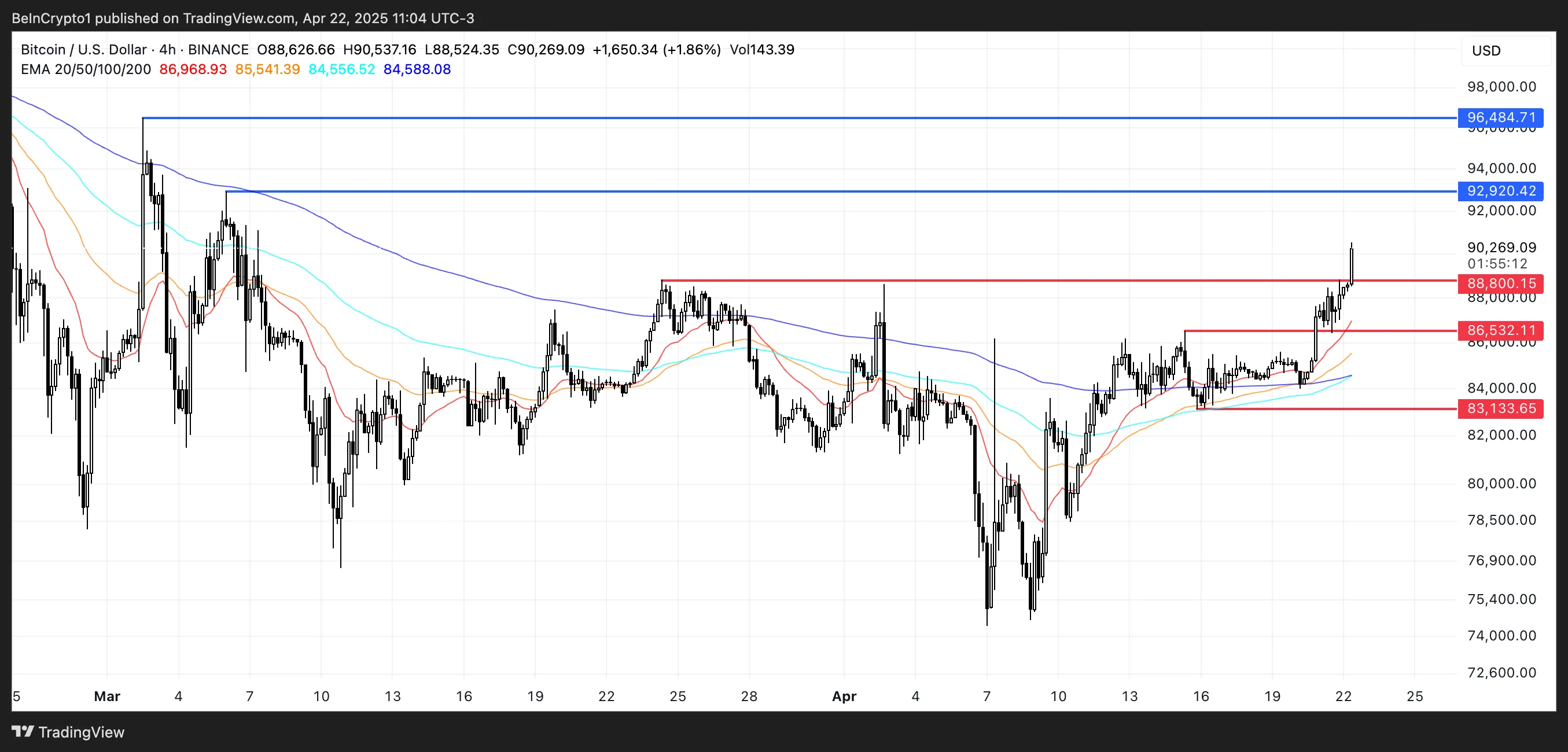 Bitcoin (BTC) broke above the $90,000 mark for the first time since March 5, as momentum indicators flash increasingly bullish signals. The latest surge comes alongside a sharp rise in ADX, a bullish Ichimoku Cloud formation, and EMA alignment favoring continued upside.