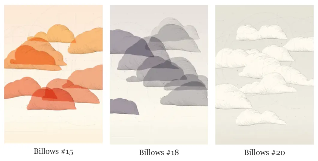 Her art sits at the intersection of mathematics, generative code, and geometric aesthetics. Her recent project "Billows" (on Alba) traces the connection between “latent states and billowing bodies; between the figures we see in clouds and pseudo-random configurations we recognize as clouds.”