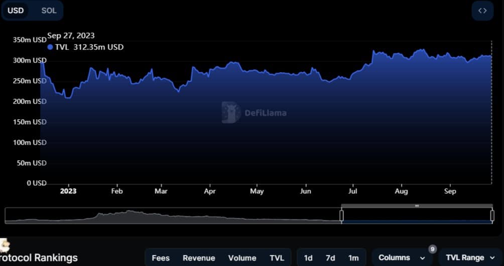Solana is also putting in a lot of effort to improve the Total Value Locked (TVL) in its ecosystem. Based on data by DefiLlama, the network’s TVL has soared in the past few weeks from $296 million to $312 million.