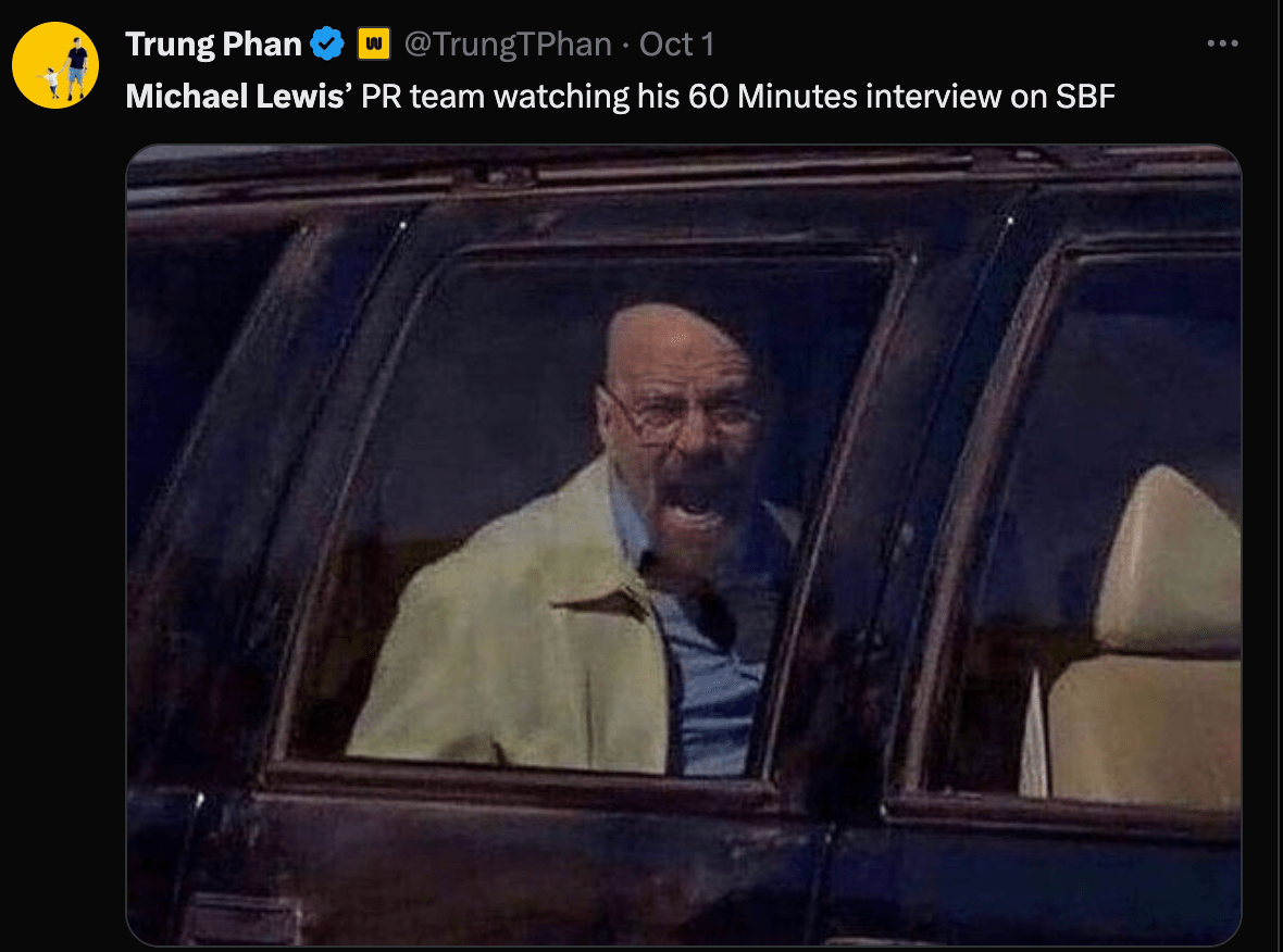 All of this has predictably led to Lewis getting skewered on social media. Jesse Eisinger, an authority on white collar crime, ripped him for writing a “hagiography” even after learning of the “rampant and obvious fraud.” Others declared that Lewis had “discredited himself and damaged his reputation” and that he had become Bankman-Fried’s “last and most willing victim.”