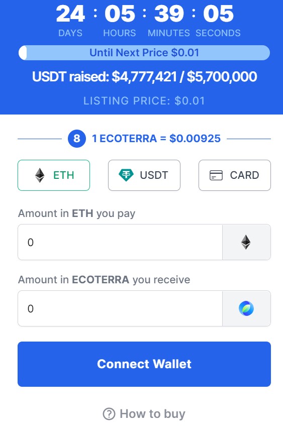 With a successful USDT fundraising of $4,777,421 out of a target of $5,700,000, Ecoterra demonstrates strong community support and a promising future in promoting sustainable practices and collaboration.